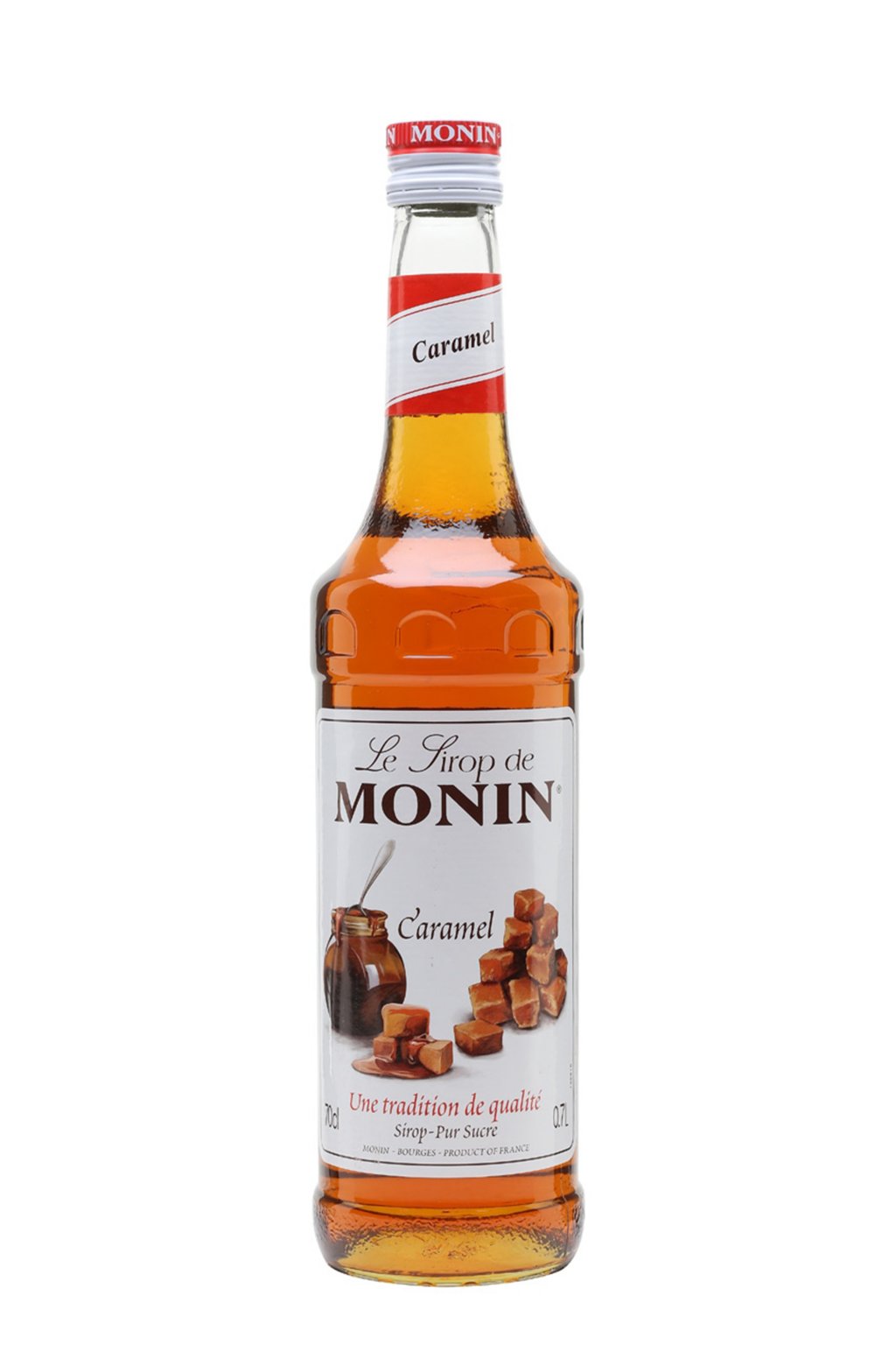 Barmanský sirup Monin s karamelovou príchuťou. Bez alkoholu. Monin sirupy - profesionálne barmanské sirupy, súčasť každého dobrého baru, chuť a aróma kokteilov a ochutených káv.