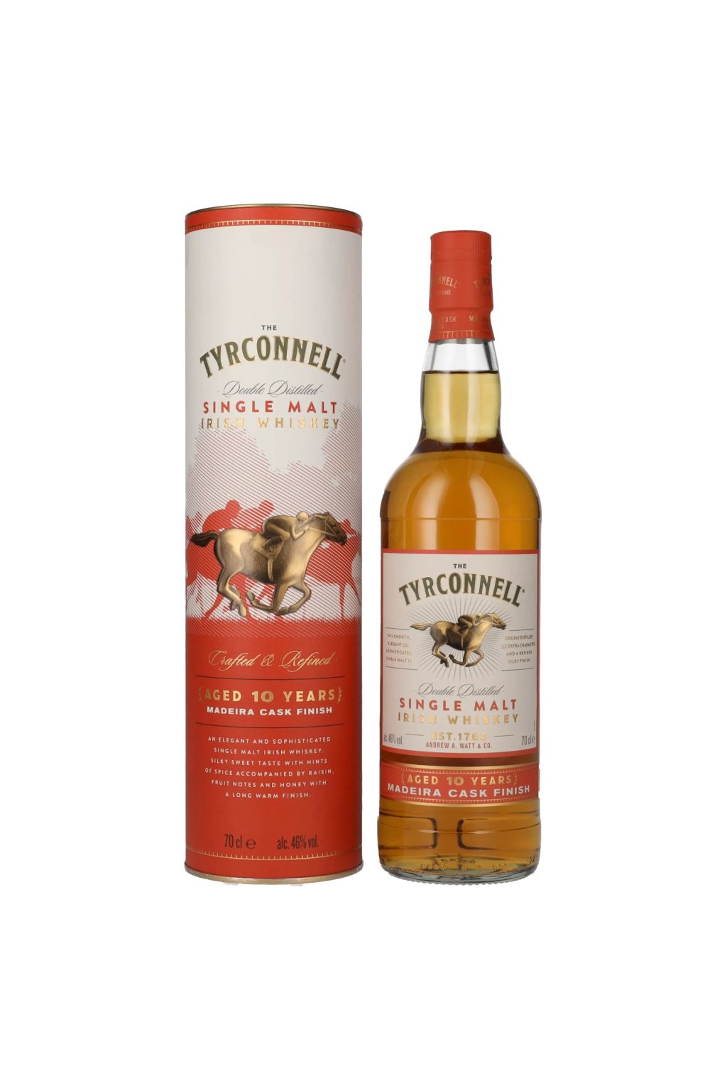 Tyconnell 10 Years Old Madeira Cask je elegantná írska whisky, ktorá zapôsobí svojou vzrušujúcou rozmanitosťou vôní a svoj osobitý tón získava zo záveru v sudoch z Madeiry. Tyrconnell 10 Years Old spočiatku dozrieva desať rokov v bývalých sudoch po bourbone z amerického dubu. Aby získal svoj osobitý šarm, je následne dokončený v portugalských likérových sudoch, ktoré mu dodávajú jedinečnú chuť.