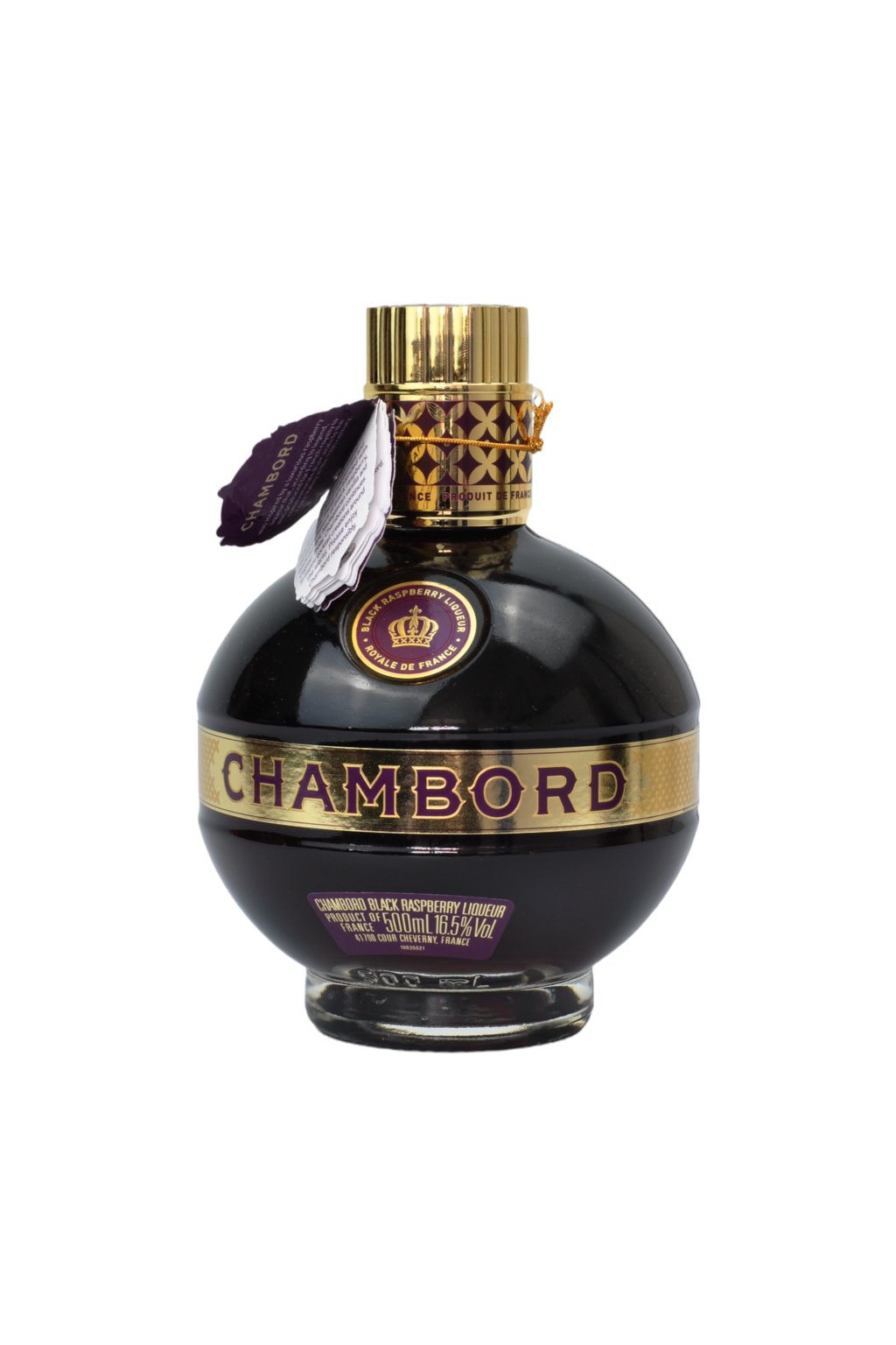 Chambord je svetoznámy malinový likér, ktorý sa prvýkrát vyrobil v údolí Loire v 17. storočí. Vyrába sa z čiernych malín, vanilky z Madagaskaru a marockých citrusových šupiek, ktoré sa namáčajú do koňaku a sladia medom. Pútavý dizajn tejto fľaše nebol inšpirovaný svätým ručným granátom, ale kráľovským jablkom - kresťanským symbolom, ktorý sa používal počas stredoveku. Kríž obklopuje guľu, ktorá predstavuje zemeguľu.