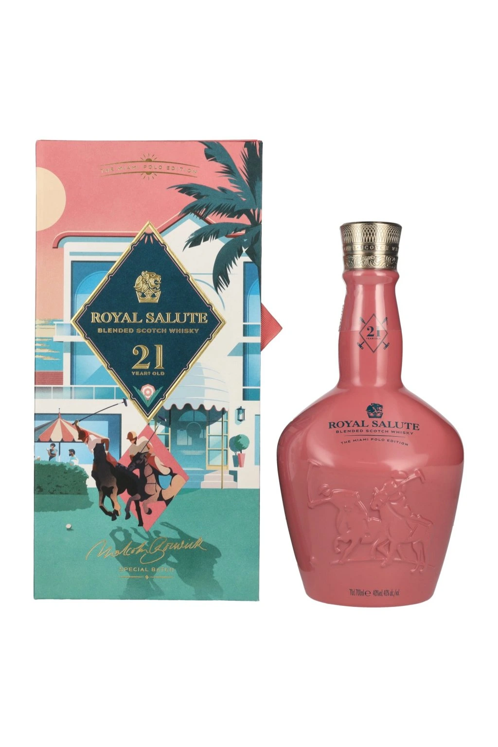 Royal Salute 21 Years Old Miami Polo Edition je inšpirovaná pulzujúcim mestom Miami, ktoré je známe svojou kultúrnou scénou a prestížnymi pólovými klubmi. V tomto meste, známom svojou art deco architektúrou v „floridskej ružovej“, ponúka pólo luxusný zážitok už desaťročia.