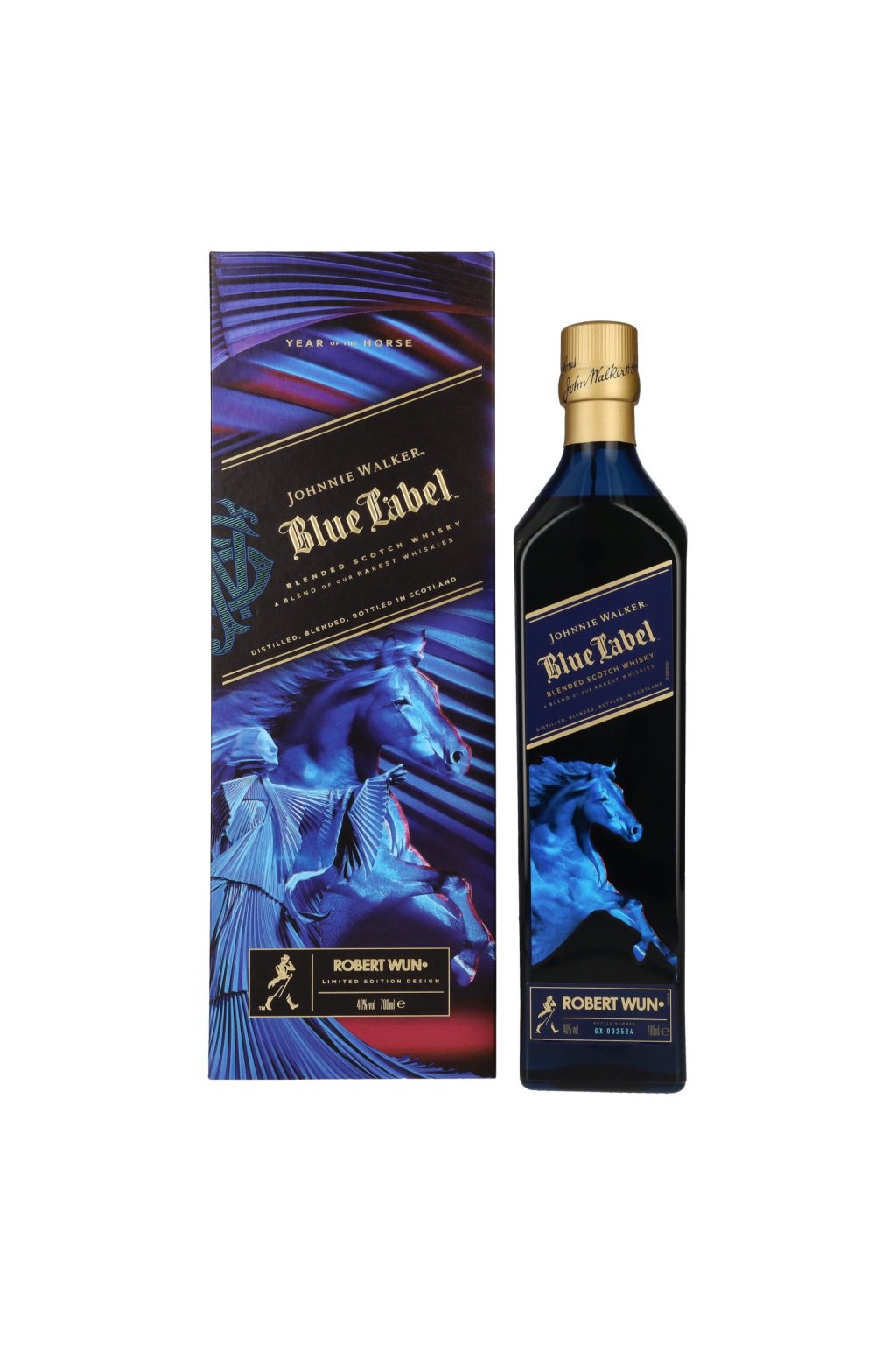 Johnnie Walker Blue Label Rok koňa je najnovšou špeciálnou edíciou v renomovanej kolekcii Lunárny Nový rok. Toto exkluzívne plnenie je založené na výbere vzácnych sladových a obilných whisky, z ktorých iba 1 z 10 000 sudov spĺňa vysoké štandardy kvality pre rad Blue Label. Táto whisky, stelesňuje charakteristickú hĺbku, komplexnosť a rovnováhu, pre ktorú je Johnnie Walker Blue Label známa po celom svete.